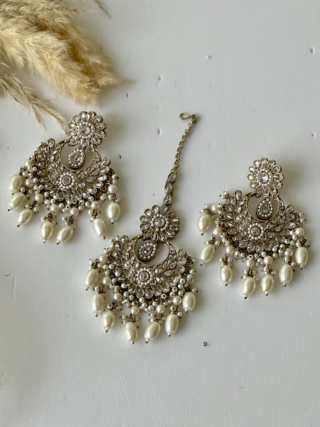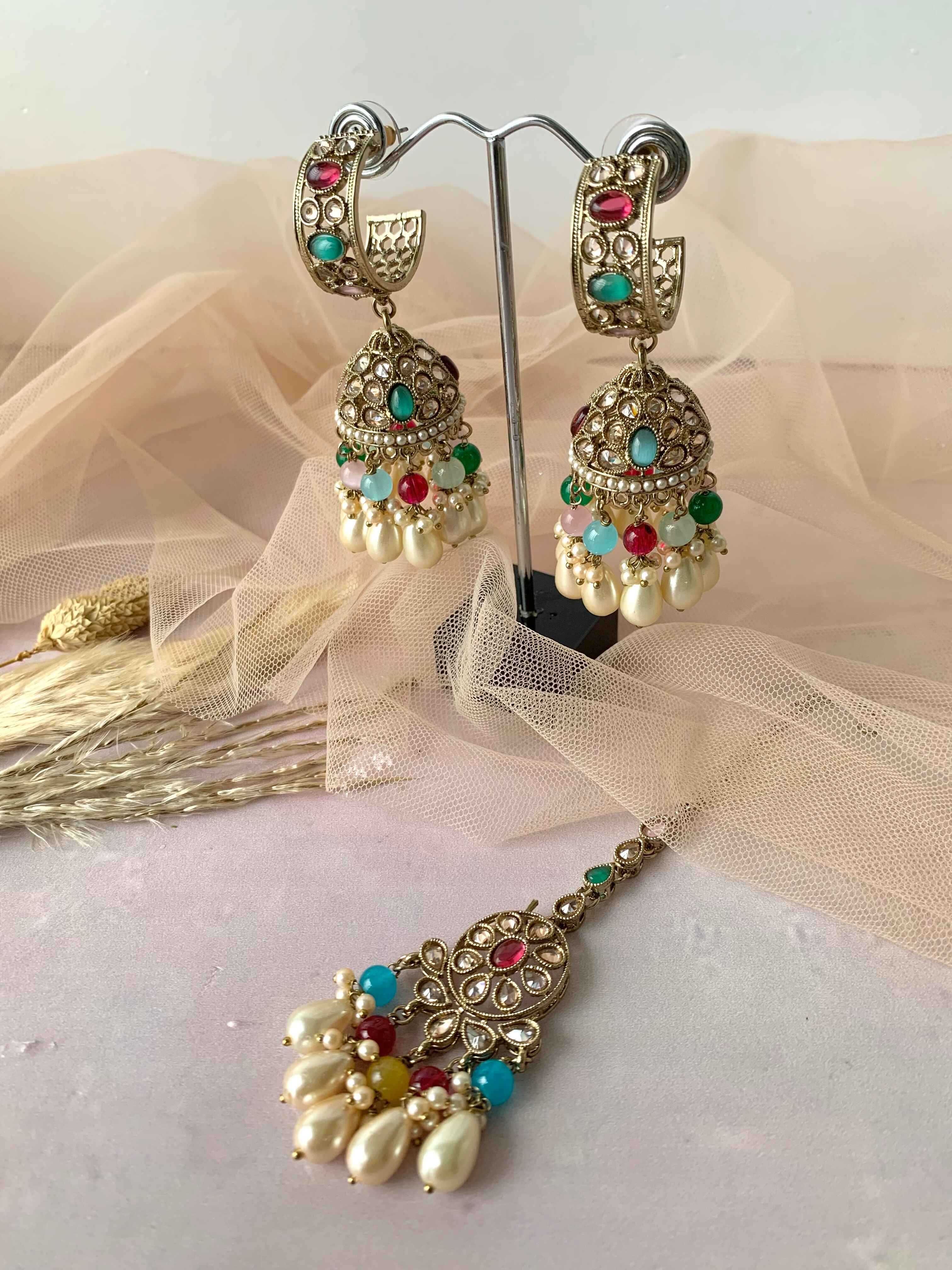 Mini polki Earrings & Tikka set (GOLD & GREEN)